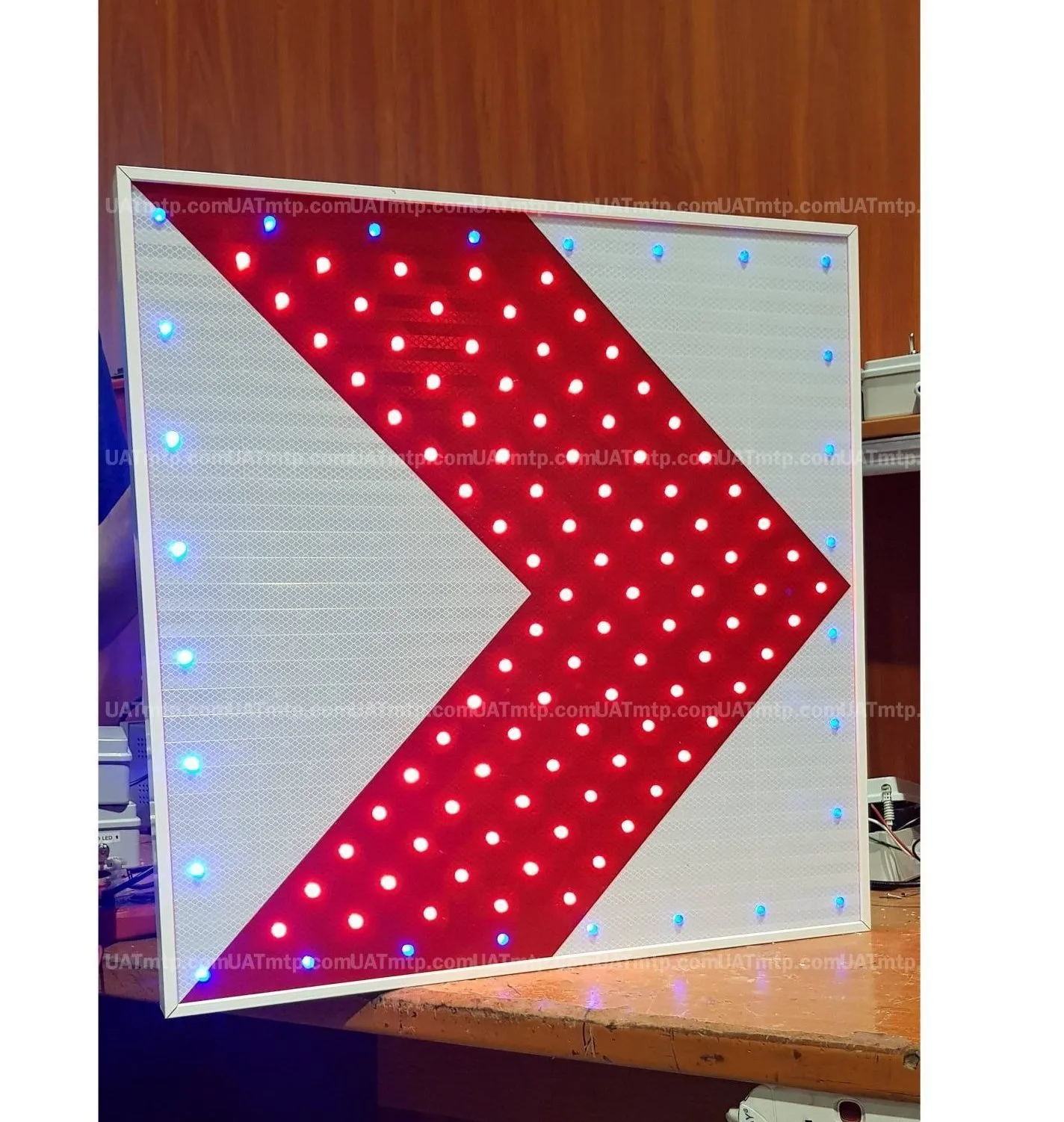 MTP Solar Traffic Chevron Sign with Blue LED Border (60*60)