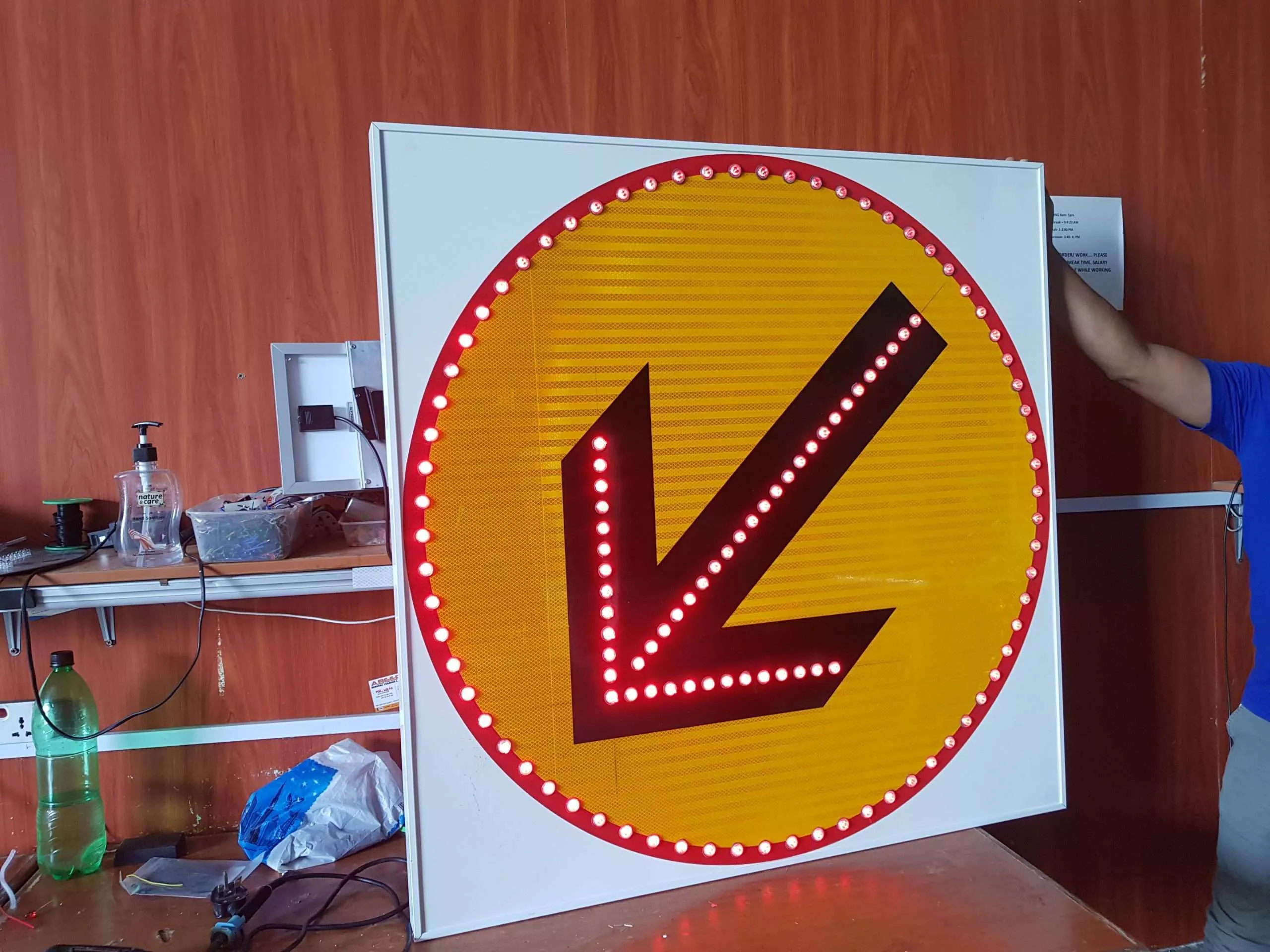 These kind of Traffic Arrow Signs are used in the critical city and urban area. It is powered by a solar panel, so it doesn’t need a city electricity line. For this reason, We use High power LED light for highways and normal LED lights for the city area.